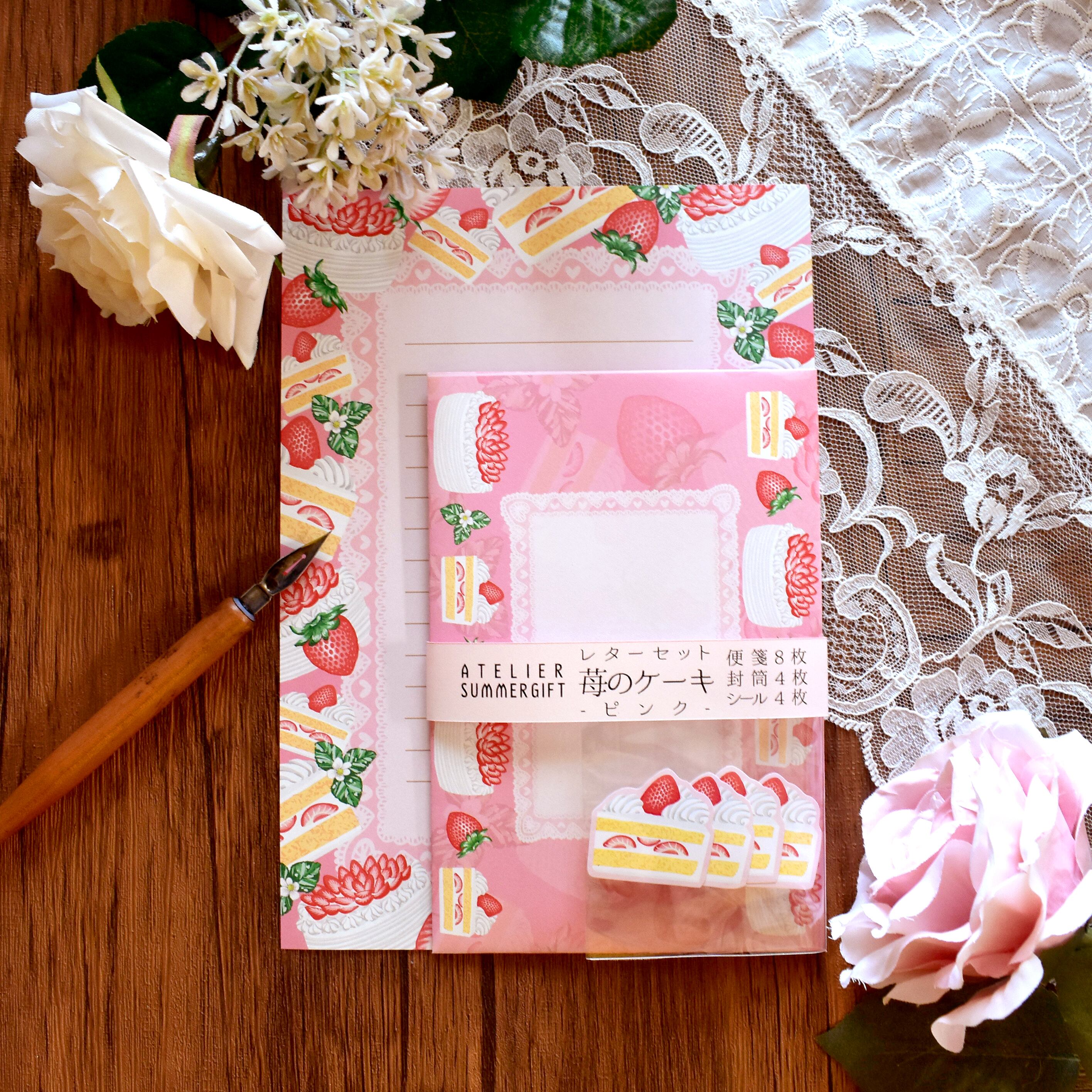 【レターセット】苺ケーキ(ピンク)【便箋】