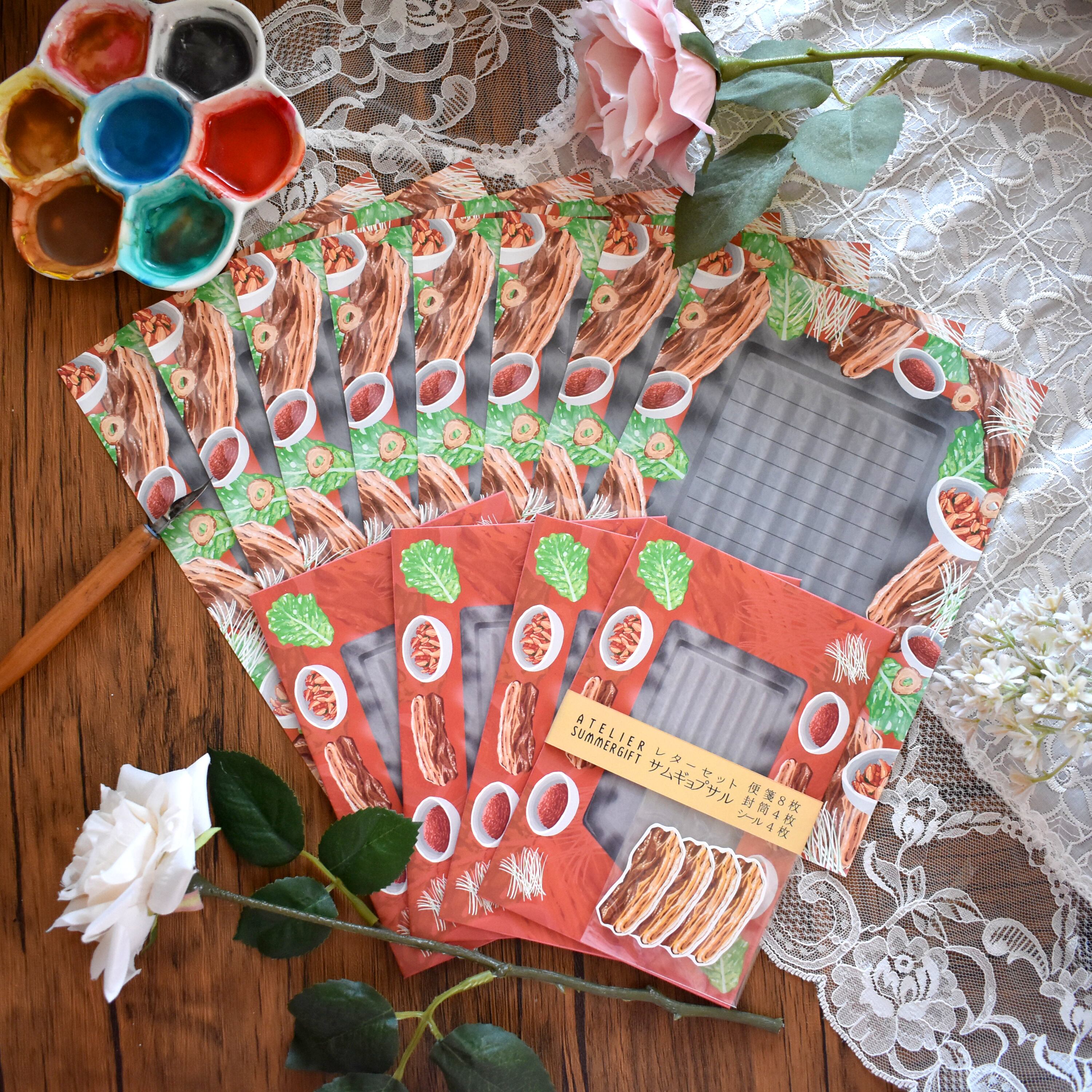 ATELIER SUMMERGIFT のイラストを使った、サムギョプサルのレターセットです。